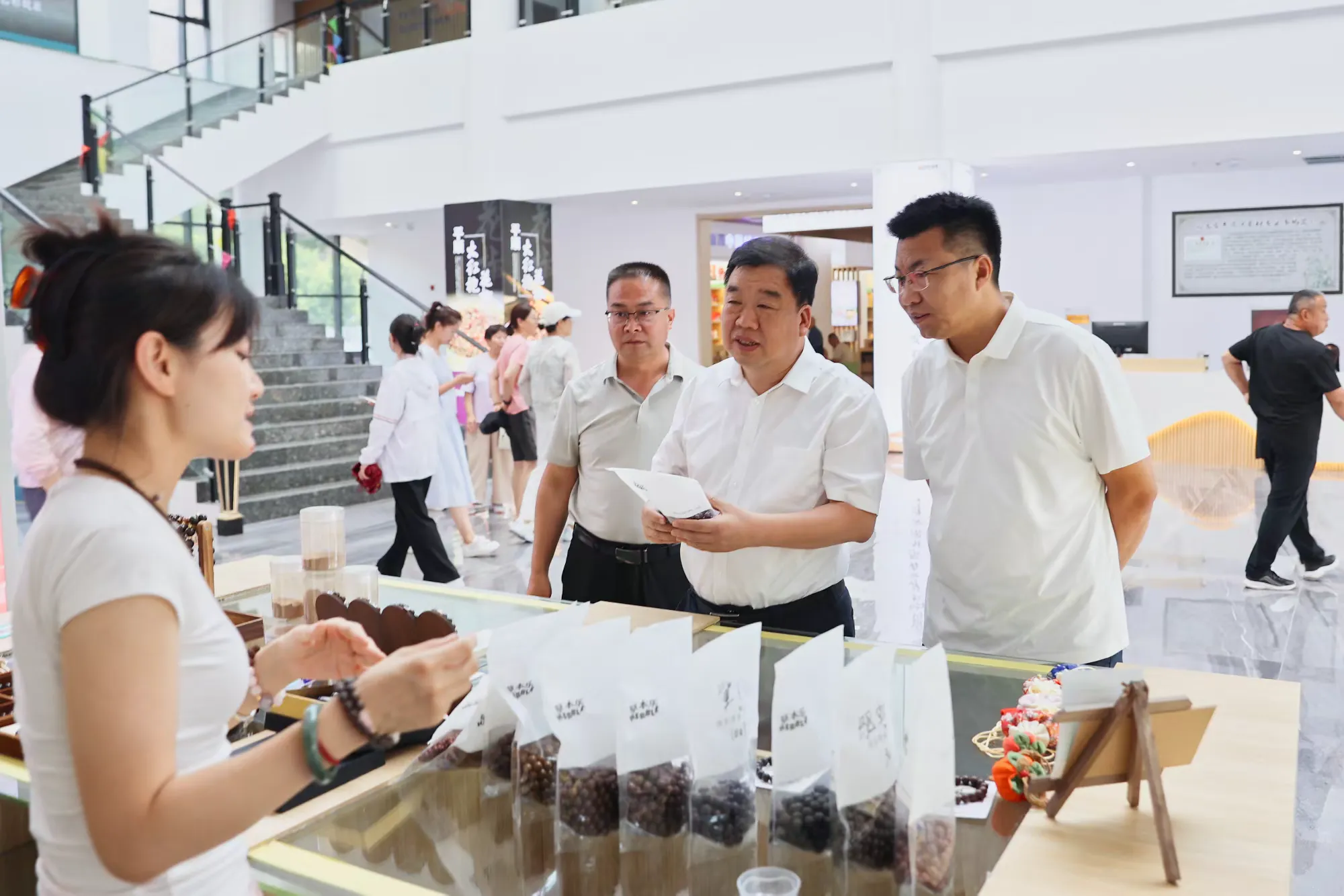 7月18日,县委书记连树斌深入我县中药材交易大会各展区,详细了解各类药材的产地、药性、价格等情况,并与大家互动交流,鼓励大家要坚定发展信心,深入学习先进地区在产品包装、市场营销、招强引流等方面的成功经验,以产品展示展销、品牌推介为突破口,持续擦亮平顺潞党参、连翘、大红袍花椒等道地药材的金字招牌,把“土特产”变成大产业,引领乡村振兴发展。同时还就进一步加快产地仓、种质库、育苗基地、检验检测中心等配套设施建设,打造“一站式”高效流通平台,全面完善市场综合功能,精准对接市场,强化以商招商,把产业基地做实、把产品品牌叫响、把融合链条锻长,不断提升中药材集市的吸引力、影响力、竞争力。副县长、公安局局长张文晓,副县长段彦飞一同参加。(王 超 贾笑梦)